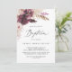 Cette invitation au baptême d'herbe de pampas boho est parfaite pour un baptême d'été pour bébé. L'aquarelle fleurie présente des fleurs bohèmes bordeaux et roses rousses avec des sprigs de pampa neutres et des feuilles de palmiers séchés dorés.