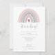 Un mignon "C'est un garçon !" Invitation de baby shower avec un arc-en-ciel bleu poussiéreux et gris avec illustration du coeur. Customisez avec vos coordonnées pour informer vos invités de votre événement.