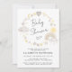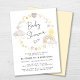 Invitation de baby shower de saumons blancs sans sexe, avec des aquarelles jaunes d'un arc-en-ciel, soleil, coeurs, étoiles, lunes et nuages.