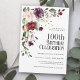Célébrez un 100e anniversaire en grand style avec cette belle invitation de fête d'anniversaire aquarelle fleurie. Il possède un bouquet d'angle floral unique dans la combinaison de couleurs chic du rouge bordeaux, rose rousse, violet prune, et pêche avec somptueuse verdure parsemée. Il fait un choix merveilleux pour les célébrations du milieu de l'été, à l'automne et tout au long des mois d'hiver. Le revers de l'invitation est orné d'un bouquet assorti. Cette invitation est disponible en tant qu'invitation imprimée ou en téléchargement numérique pour votre commodité!