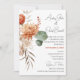 Faire-part de mariage floral complété par un bouquet de disposition florale rustique dans les tons chauds et clairs