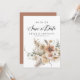 Boho Rustic Save the Date a été conçu avec une illustration florale de tonalité terre. Customisez votre carte en ajoutant votre photo préférée à l'arrière. Conception de la fête Cava