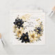 Un faire-part de mariage boho rustique, avec une couronne fleurie crémeuse blanche et noire sur un arrière - plan à grains de bois clair, comme caractéristique principale de ce design, avec tous les détails sur le dos.