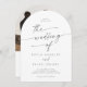 Cette photo en gris argent boho et son faire-part de mariage en arc de code QR sont parfaits pour un mariage minimaliste. Le design moderne et bohème blanc et gris argenté blanc et fantaisiste se compose d'une calligraphie rustique simple au style unique mais classique. Parfait pour toute saison : printemps, été, automne ou hiver. Personnalisez le dos de votre invitation de mariage avec votre photo fiançailles préférée. Inclure un code QR pour que l'invité puisse facilement RSVP, afficher les détails ou les deux.