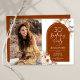 Photo 30th Birthday party invitation en terre cuite brûlée orange et blanc. Bel design moderne minimaliste avec des accents botaniques peints à la main et votre photo. Caractéristiques pampas herbe, feuille, rose et typographie script. Thème du désert tendance bohème parfait pour l'automne, l'hiver, le printemps ou l'été. Vous pouvez choisir des invitations imprimées et/ou le modèle numérique de téléchargement instantané. Parfait pour une célébration féminine du 30ème anniversaire.