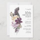 Une invitation unique boho tropical aquarelle florale 30ème anniversaire avec une somptueuse palette de couleurs en violet, prune, beige (blanc cassé) et vert. Un beau grand perroquet violet se dresse sur un luxueux bouquet de fleurs tropicales exotiques. Le jeu de couleurs est parfait pour les fêtes d'anniversaire en toutes saisons et a un charme rustique. Les belles fleurs de cet élégant design moderne comprennent des protéas exotiques, des orchidées, des dahlias et des feuilles tropicaux. Personnalisez le modèle de texte avec les détails de votre événement. Vous pouvez modifier l'âge pour toute célébration d'anniversaire d'âge.
