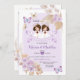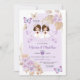 Boho TWIN Girl First Holy Communion Purple Flowers Invitation Primera Comunión.