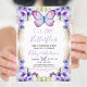 Boho Twin Purple Butterfly First Birthday Floral Invitation