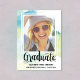 Ce chic faire-part de graduation photo comprend le mot "Graduate" écrit dans une belle calligraphie, un subtil arrière - plan bleu et vert aquarelle, et une photo encadrée du nouveau diplômé. Les détails de la fête de grade peuvent être ajoutés au verso de la carte.