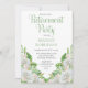 Célébrez votre "Retraite" avec des roses blanches et des orchidées avec ce design floral en cascade avec un script vert sage subtil et un texte d'accent serif. Conception composite par Holiday Hearts Designs (droits réservés).