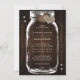 Invitation Bois rustique Burlap Coeurs Mason Jar Mariage