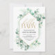 Bonjour Bébé Vert Eucalyptus Aquarelle Douche Invitation. Caractéristiques de l'aquarelle eucalyptus feuilles, cadre or et blanc, et un feuille d'or Hello Baby texte.