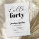 Invitation minimaliste de 40ème anniversaire avec une typographie moderne simple en noir et blanc.