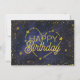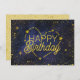 Carte d'anniversaire personnalisée avec "Joyeux anniversaire" en typographie mixte encadrée d'étoiles d'or, d'étoiles tournantes et de constellation cardiaque. Plusieurs tailles disponibles. Également disponible pour téléchargement instantané à envoyer et partager.
