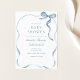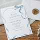 Invitation baby shower avec un arc et un ruban bleu aquarelle. Personnalisez avec vos informations ou cliquez sur "Cliquez pour customiser plus loin" pour modifier les styles, la taille et les couleurs des polices.