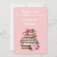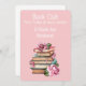 Une invitation colorée et branchée pour une librairie qui se tient soit dans une maison de particuliers, soit dans une librairie locale. Cette invitation présente un joli dessin animé de livres de lecture romantiques roses avec du texte personnalisable et des couleurs arrière - plans. Parfait pour votre prochaine réunion de club de lecture.