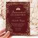 Invitation Bordeaux à fleurs dorées Tiara chic Quinceañera