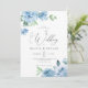 Elégant mariage fleuri dans une seule invitation. Faire-part de mariage botanique moderne avec script de calligraphie et fleurs d'aquarelle peintes à la main en bleu clair bébé avec des détails et code QR RSVP à l'arrière. Vous pouvez personnaliser le libellé, le style de police, la couleur et la taille devant et derrière l'invitation. N'hésitez pas à me contacter pour les articles correspondants.