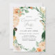 Belle invitation de fiançailles avec une élégante couleur pastel neutre aquarelle botanique cadre de verdure fleurie dans des tons doux de terre de pêche, orange, doux rougir, jaunes, et beaucoup de nuances de vert sauge à vert clair et profond. Vos détails personnalisés s'affichent dans une mise en page surélevée de typographie qui place l'invité d'honneur au centre.