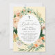 Belles invitations Dedication avec une élégante aquarelle moderne neutre couleur pastel botanique cadre de verdure fleurie dans des tons doux de terre de pêche, orange, doux rougir, jaunes, et beaucoup de nuances de vert sauge à vert clair et profond. Vos détails personnalisés s'affichent dans une mise en page surélevée de typographie qui place la douce petite fille au centre et à l'avant.