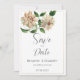 Elégant style vintage blanc, rouge, or et vert fleuri mariage Save the Date Invitation est parfait pour les couples à la recherche d'une touche romantique et simple à leur grand jour. Ce cadre de fleurs botaniques chic et champêtre entoure vos détails mariages. Offrez à vos invités un merveilleux aperçu de votre mariage pour venir cette invitation sera un ajout fantastique à vos événements mariages.