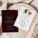 Cette faire-part de mariage botanique fleurie rustique à l'avant et à l'arrière est parfaite pour un mariage simple. Le design présente de belles fleurs et des feuillages dessinés à la main et colorés, élégamment arrangés en bouquets attrayants. Enregistrez du papier en incluant plus de détails au verso de l'invitation plutôt que sur une carte de boîtier séparée.