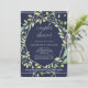 Cette élégante invitation à la douche en couple présente un cadre géométrique à l'aspect argenté et moderne avec une courroie verte à la mode remplie de feuilles, sur un arrière - plan bleu nuit.