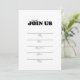 Invitez vos invités avec cette élégante invitation noire et blanche. Modèle facile à utiliser pour écrire vos invitations à la main. Utilisez-le pour n'importe quelle occasion ou événement tel que les mariages, les anniversaires, les anniversaires de naissance et les réunions de famille. Invitation polyvalente qui facilitera l'organisation de votre célébration. Personnalisez davantage ce design en sélectionnant le lien "personnaliser davantage" si vous le souhaitez, mais pourquoi ne pas le garder simple.