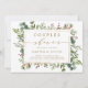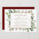 Cette invitation à la douche en couple est composée d'eucalyptus peints à l'aquarelle, de feuilles verts, de baies rouges, de branches de pins et d'un cadre rectangulaire en faux or avec une calligraphie élégante. Pour une personnalisation plus avancée de cette conception, cliquez sur le lien "Customiser plus loin". Des articles correspondants sont également disponibles.