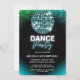 Invitation d'anniversaire rétro avec une boule de disco turquoise brillante et des paillettes vertes et bleues sur fond noir. Parfaite pour votre soirée disco rétro, cette invitation donnera le ton à une célébration amusante et mémorable.