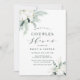 Cette invitation à la douche en couple comprend une végétation hivernale peinte à la main, des fleurs de coton aux textures dorées et aquarelles, et un motif à feuillage persistant à branche sur le dos. Pour une personnalisation plus avancée de cette conception, cliquez sur le lien "customiser plus loin". Des articles correspondants sont également disponibles.