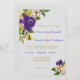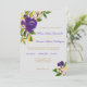 Le violet et l'or sont des couleurs royales, et toujours exquis pour une faire-part de mariage fleurie ! Celui-ci a un étonnant bouquet floral aquarelle en haut à gauche, et une image plus petite et similaire en bas à droite. Entre les est votre texte personnalisé dans l'or et le violet correspondants. Les images et le texte sont placés sur un arrière - plan gris doux pour compléter les couleurs. Le fond de l'invitation est gris et massif, avec un tout petit emblème floral en bas. Classé, et adapté aux mariages en toute saison, mais surtout au printemps, à l'été et à l'automne.