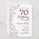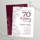 Invitation à la fête de 70e anniversaire de floraison bourguignonne. Design élégant en marsala vin et blanc avec des accents de dessin botanique et de script de typographie. Carte invitation simple et tendance, parfaite pour une célébration anniversaire élégante. Peut être customisé à n'importe quel âge. Invitations Zazzle imprimées ou téléchargement instantané modèle imprimable numérique.