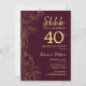 Bourgogne Gold Surprise 40e anniversaire Invitation. Le minimaliste marron design féminin moderne comporte des accents botaniques et des caractères typographiques. Carte invitation florale simple parfaite pour une célébration anniversaire surprise femme élégante.
