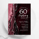 Bourgogne et argent agate 60e anniversaire invitation de fête. Elégant design moderne avec marsala rouge foncé aquarelle vin agate marbre arrière - plan, faux parties scintillant argent et typographie script police. Carte invitation branchée parfaite pour une célébration anniversaire féminine élégante. Invitations Zazzle imprimées ou téléchargement instantané modèle imprimable numérique.