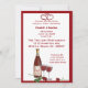 Cocktail-heure pour la mariée et le marié. Cette invitation a une bouteille de vin avec les initiales des couples et deux coeurs entrelacés, et deux verres à vin. Une bonne façon de commencer la célébration mariage. Le design est orné de longues tiges de roses rouges.