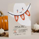 Adorable KIDS Halloween invitations de fête sont parfaites pour les enfants halloween bash, tour de quartier ou de traiter des événements, des fêtes costumées et des célébrations d'Halloween spooktaculaire! Le design mignon présente une illustration de fantôme d'aquarelle souriante tenant un drapeau de bunting avec le mot "BOO". Personnalisez avec les détails de votre fête sous les lettres en noir et orange.