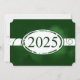 Des motifs floraux entourant bouton sur un ruban blanc aux motifs floraux. Arrière - plan vert nuageux. Le dos de la carte a un arrière - plan vert avec des lettres blanches pour les annonces de remise de diplômes.
