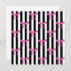 Le ruban rose s'incline sur des rayures noires et blanches. Ces petits arcs avec un joli ruban rose sur un arrière - plan rayé noir et blanc sont idéaux pour les coussins, la literie, les sacs et les accessoires.