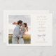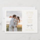 Chic et élégant. Cette magnifique carte de dattes contient un joli ruban d'aquarelle blanche, une police d'or d'imitation contemporaine contre un arrière - plan blanc cassé et une photo de couple. Initiales de couple facultatives à l'arrière avec détails de ruban répétitif. Mémorable et unique, cette carte exhale un sens de l'élégance, de la joie et du charme.