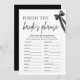 Ajoutez un peu de plaisir et de rire à la douche nuptiale avec ce jeu "Finish the Bride's Phrase" 🎀 ✨! Les invités essaieront de deviner comment la mariée pourrait terminer différentes phrases, ce qui conduira à des moments hilarants et déchirants 💕. Doté d'un design élégant, ce jeu est parfait pour une douche nuptiale élégante et élégante. Personnalisez et imprimez pour une célébration mémorable !