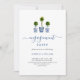 Elégante aquarelle peinte à la main 3 topiaires en bois de boxe en bleu et blanc invitation de fiançailles en pot avec peint à la main avec photo de couple à l'arrière. Parfait pour fiançailles, dîner de répétition, faire-part de mariage ou invitation de la fête de la maison.