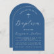 Invitation Boy Baptism Arc Classique Bleu Blancs Script & Cro