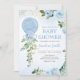 Invitation Boy Blue Balloon Baby shower de verdure