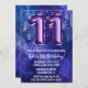 Garçon bleu blanc 11e anniversaire invitation garçons 11 anniversaire invitation pour un garçon bleu violet avec écriture de script moderne et des ballons de papier amusant.