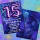 Garçon bleu violet 15e anniversaire invitation garçons 15 anniversaire invitation pour un garçon bleu violet avec écriture de script moderne et des ballons amusants en feuille d'aluminium.