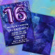 Garçon bleu blanc 16e anniversaire invitation garçons 16 anniversaire invitation pour un garçon bleu violet avec écriture de script moderne et des ballons de papier amusant.