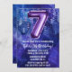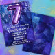 Garçon bleu violet 7ème anniversaire invitation garçons 7 anniversaire invitation pour un garçon bleu violet avec écriture de script moderne et ballon en papier amusant.