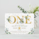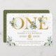 Elégant garçon 1er anniversaire invitation avec belle aquarelle feuillage vert et des arroses de confettis d'or