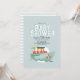 Ce design d'invitation pour baby showers garçons mignon et moderne comprend un dessin animé de bateau, avec un motif rayé bleu assorti sur le dos, et peut être personnalisé avec le nom du parent et d'autres détails nécessaires à votre fête. L'adorable mer océanique et le thème nautique complètent le baby shower des couples.